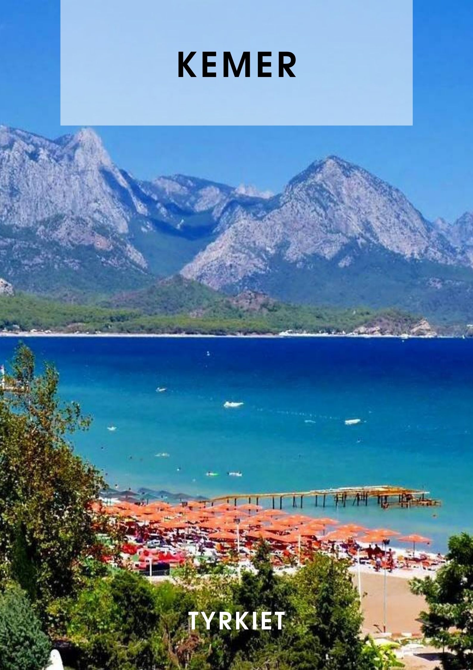 Ved foden af de smukke grønne Taurus bjerge og helt ud til Middelhavet på Tyrkiets sydkyst ligger den skønne og afslappede badeby Kemer. Tilbage i tiden ernærede indbyggerne sig primært af appelsindyrkning i den lille landsby, som med tiden har vokset sig en del større. Men heldigvis i forening med naturen og uden der må bygges højhuse etc. Alt skal være i lav stil og overalt ser du de små bygninger, torve og små gader.